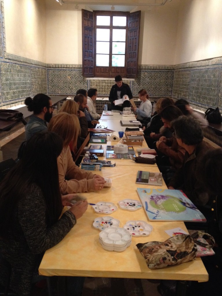 Mini-taller sobre Lápices acuarelables, en las charlas para ilustradores «Truco o Retrato» organizadas por Garabattagge Ilustra. Sevilla Mayo 2016.
